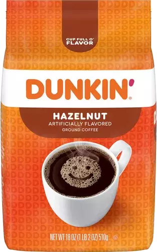 Dunkin' Hazelnut Flavored Ground Coffee, 18 oz (Packaging May Vary)